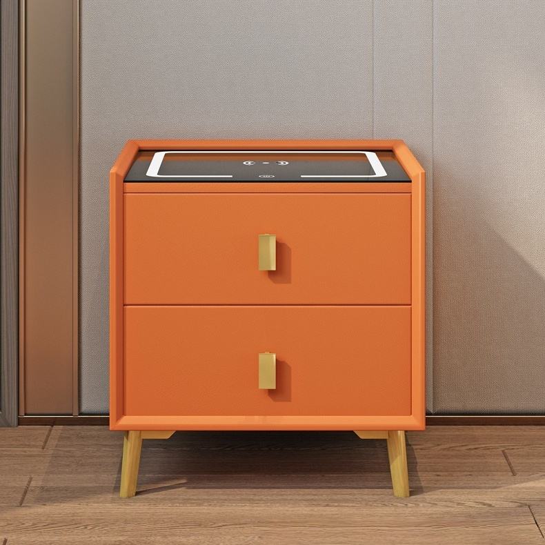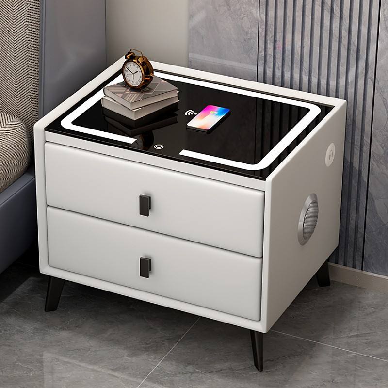 Table de chevet intelligente en bois de luxe moderne avec deux tiroirs en cuir multifonctionnelle avec haut-parleurs
