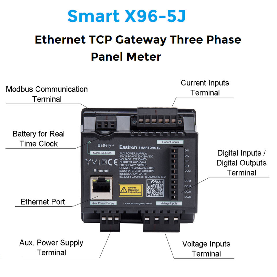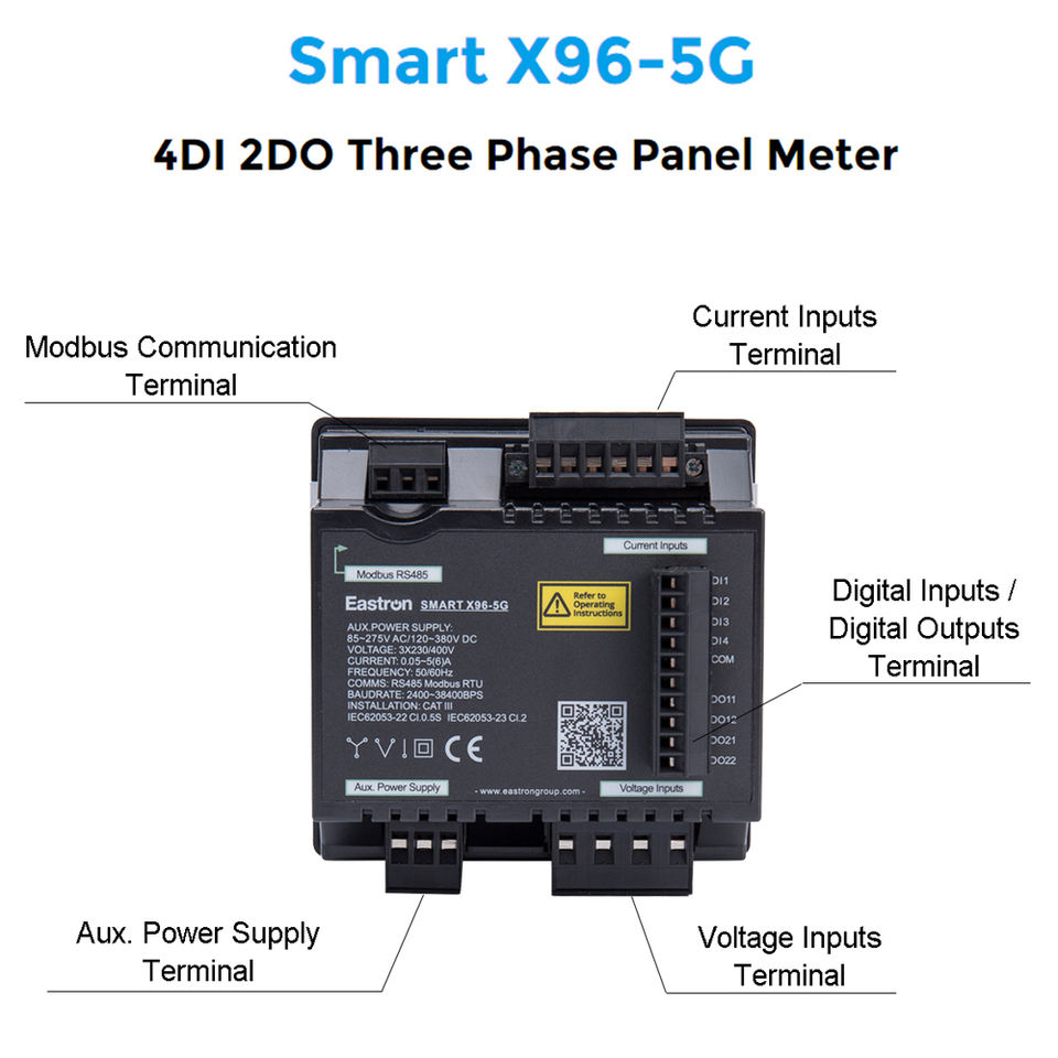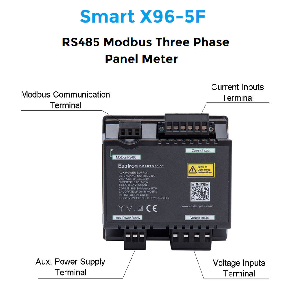 Compteur de puissance numérique triphasé intelligent X96-5 monté sur panneau avec Modbus, mesure KWh, kVarh, kW, kVar, kVA, P, PF, Hz, dmd, V, A, THD