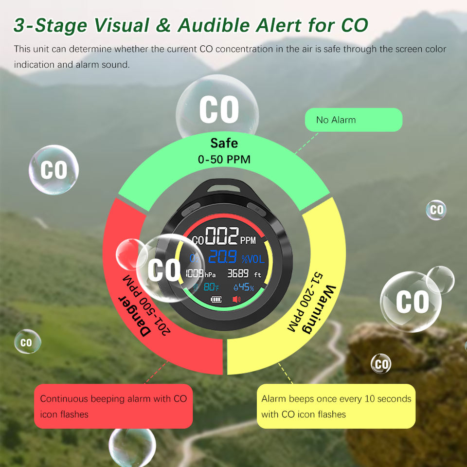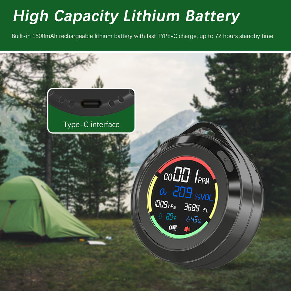 Testeur de qualité de l'air intelligent Détecteur de monoxyde de carbone portable Mini détecteur de CO 6-en-1 pour camping-car et voyage