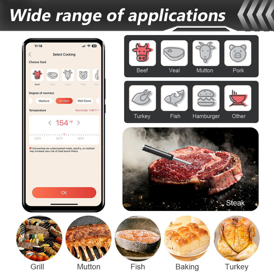 Thermomètre à viande sans fil bluetooth intelligent pour télécommande numérique sans fil alimentaire cuisine four gril thermomètre sonde