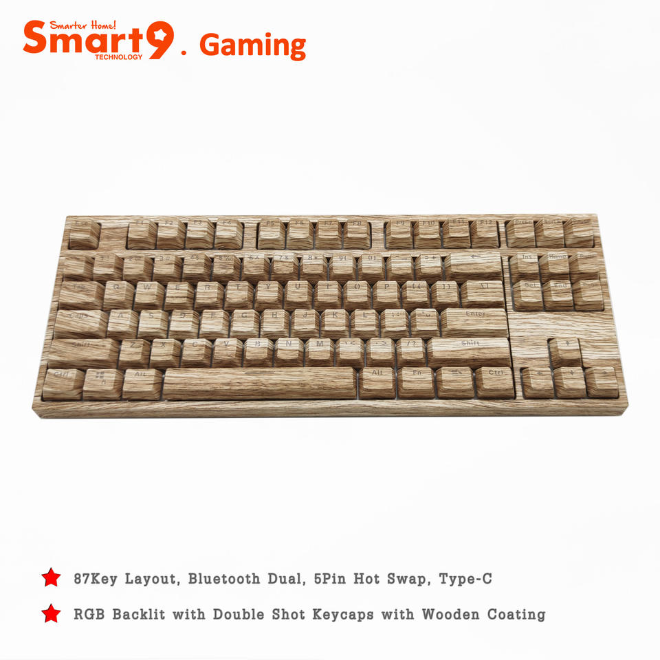Deko — clavier de jeu mécanique en bois Smart9 M87K, rétroéclairé rvb complet, 5 broches, échange à chaud
