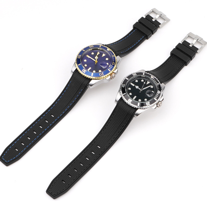 Montre Bracelet Noir-Bleu 42-44 Mm Flexible Silicone Trou Design Élégant Compatible