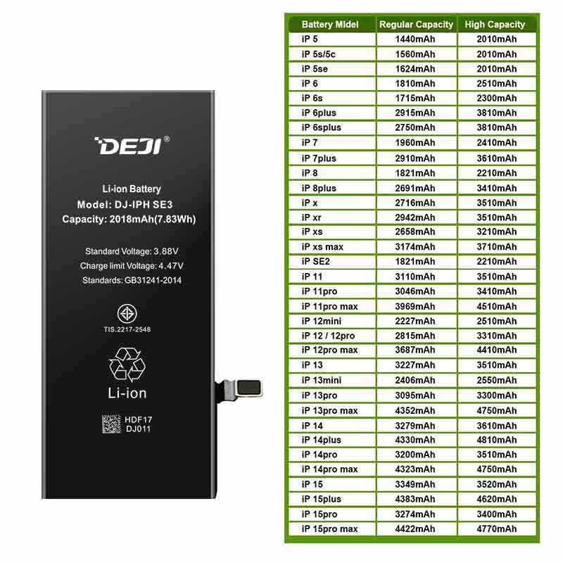 Batterie de téléphone portable pour iPhone 6 6s 6p 6sp 7 7p 8 8p Plus X Xr Xs Max 11 12 13 14 15 16 Pro Max