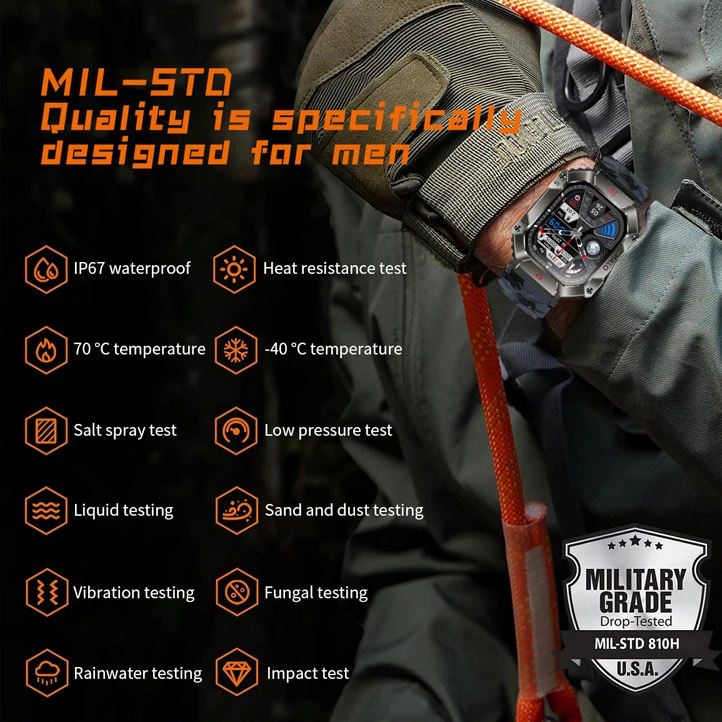 Montre intelligente KR80 écran de 2.0 pouces batterie 650mAh BT boussole d'appel altimètre baromètre traqueur de fitness extérieur IP67 montre intelligente bon marché