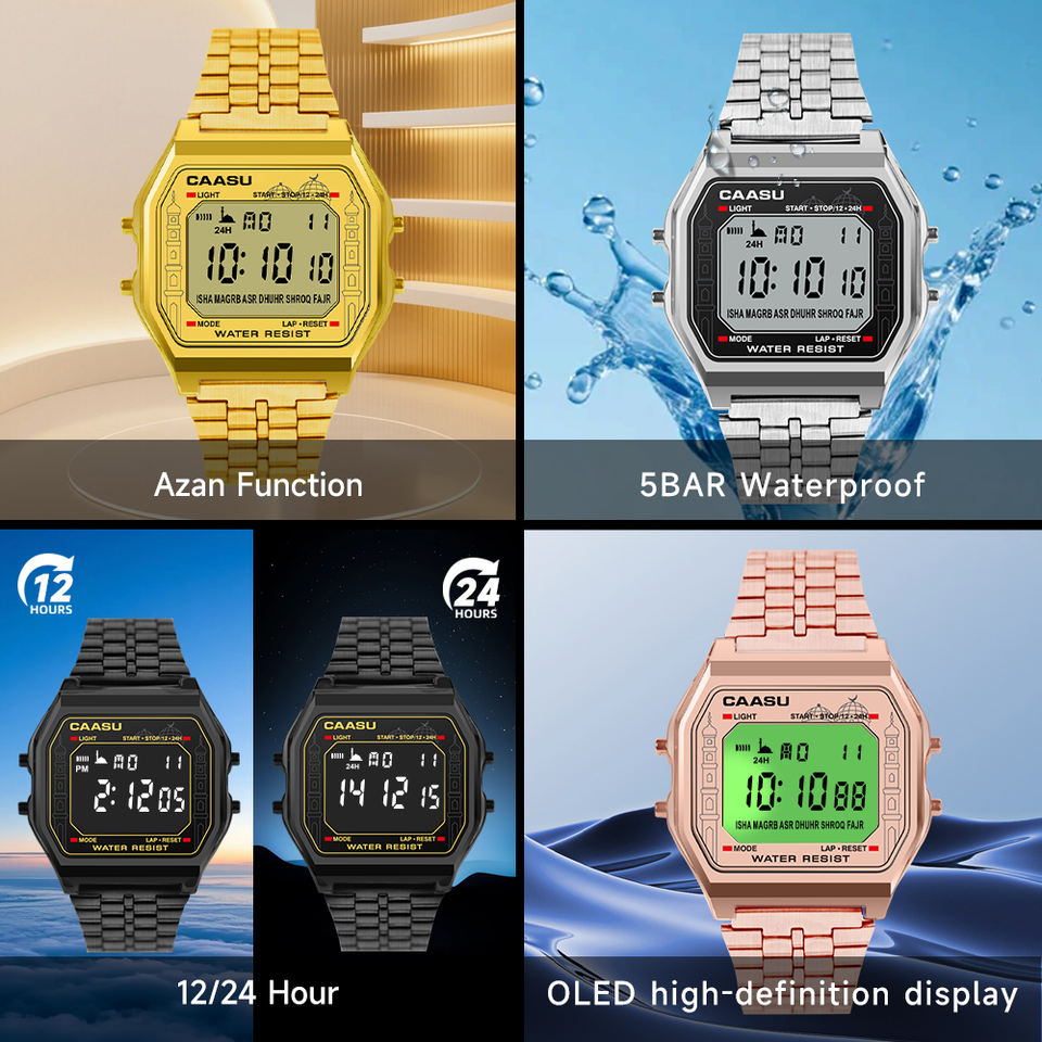 Montre Réveil Azan Musulmane Smechanical, Étanche IP67, Écran OLED, Bracelet en Acier Inoxydable, Unisexe, Compatible OS/Android