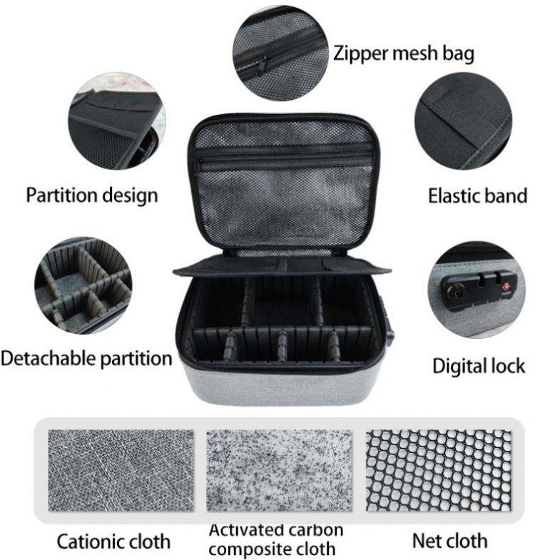 Sac anti-odeur avec serrure à combinaison TSA, sac de rangement inodore pour voyage, boîte de rangement inodore avec doublure en charbon actif