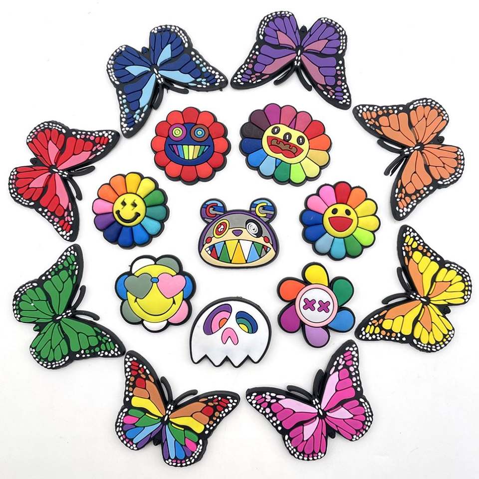 Breloques décoratives pour chaussures, bracelets et sabots, motif visage souriant, tournesol, extraterrestre, papillon