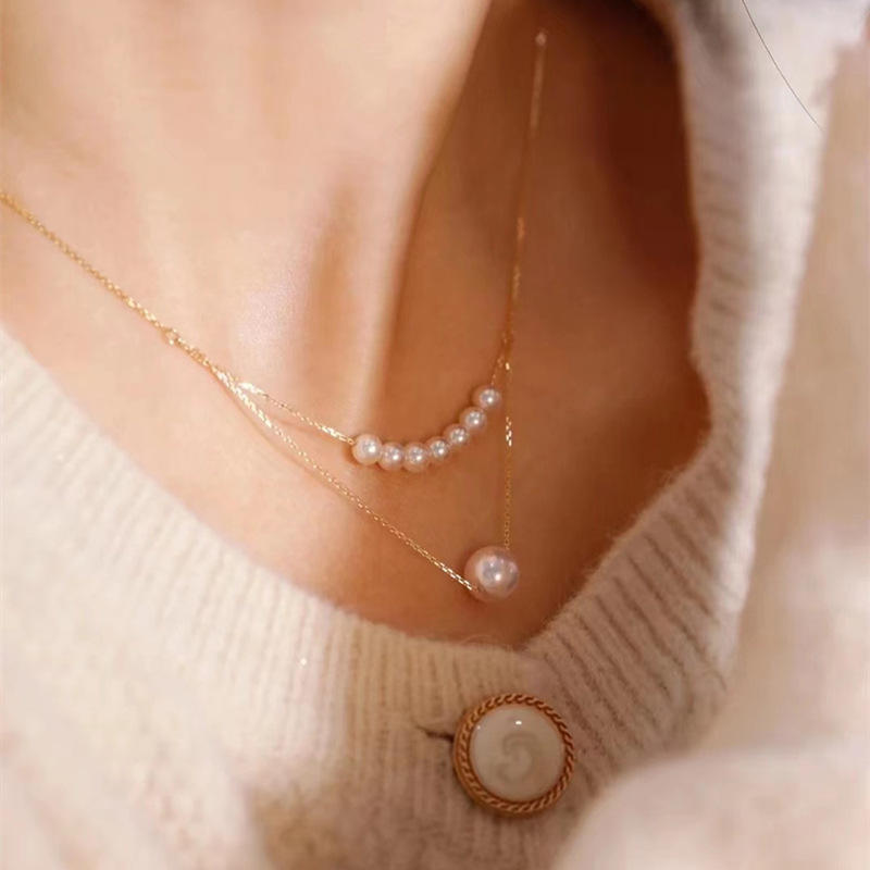 Collier à double rangée en argent S925 avec perles d'eau douce naturelles, design simple et haut de gamme, Smiling Pearl