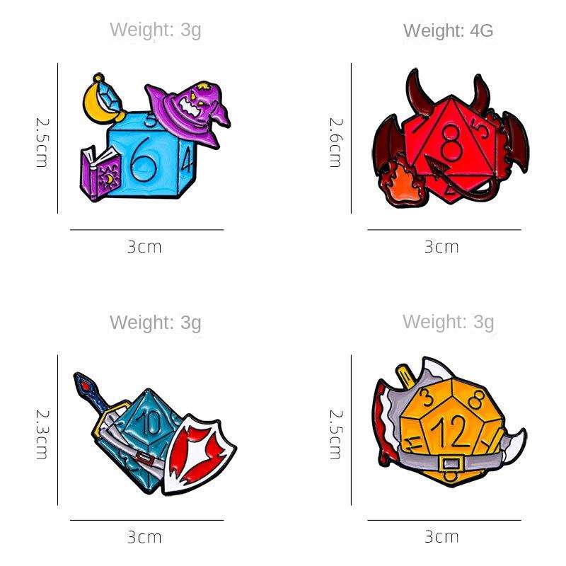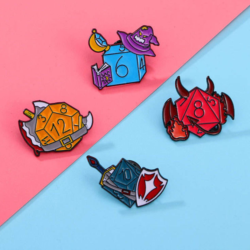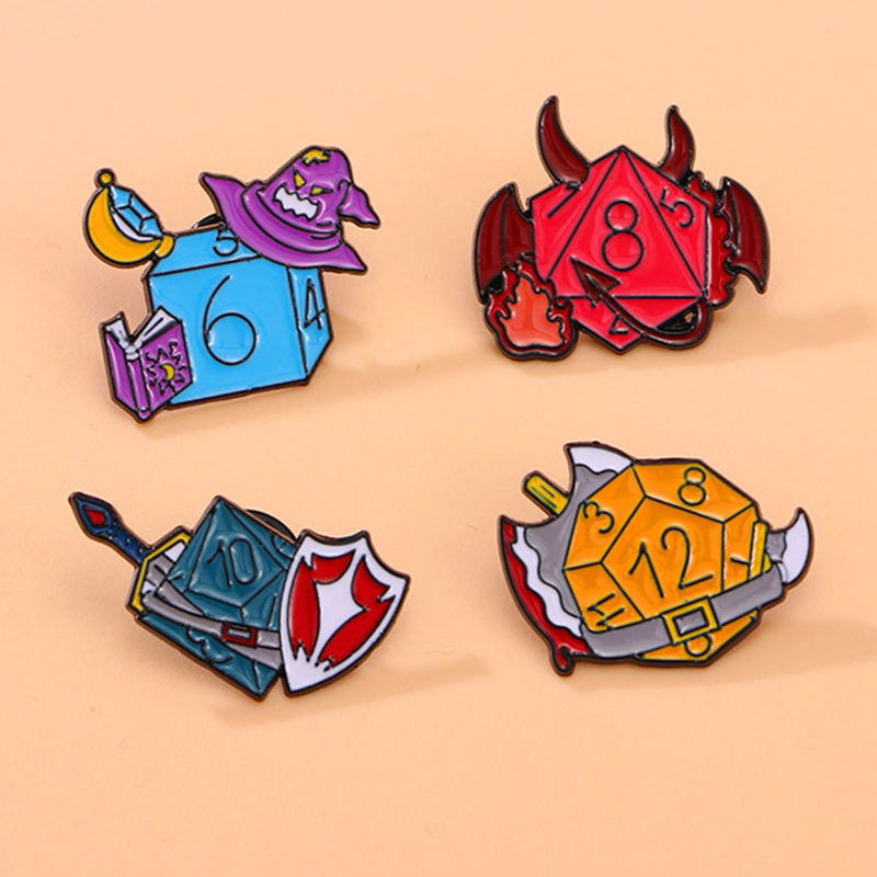 Sming Pins démon dés émail broche sorcière guerrier jeu Flip revers Badge 666 bouclier Mage métal broche Mini quantité minimale de commande