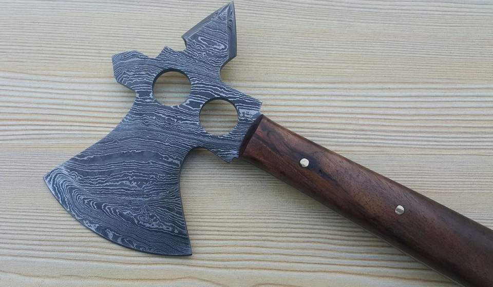 Outil en acier de Dmascuss de hache Viking forgée à la main de Smith pour le camping en plein air de qualité industrielle avec hachette et couvercle