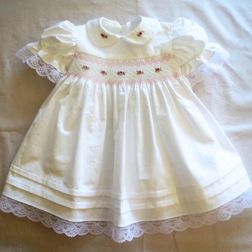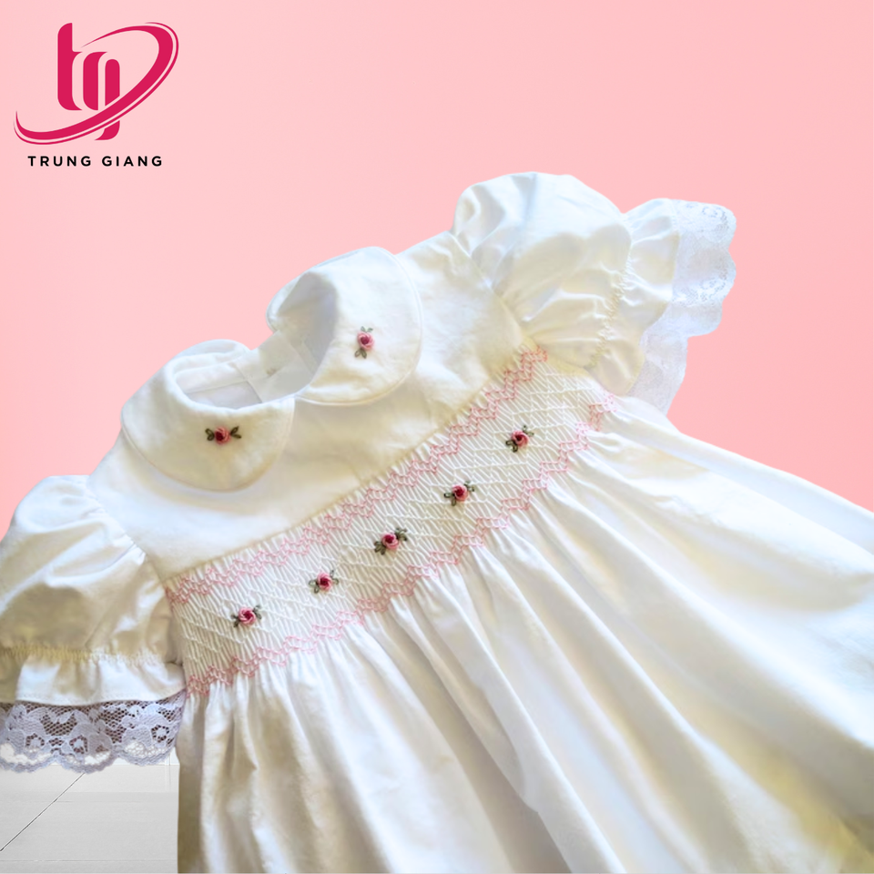 Smocked Children's Clothing Princess Baby Girls Dresses Cotton with Embroidered Floral Custom Design for Wholesale High Quality