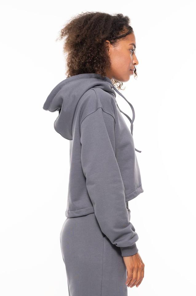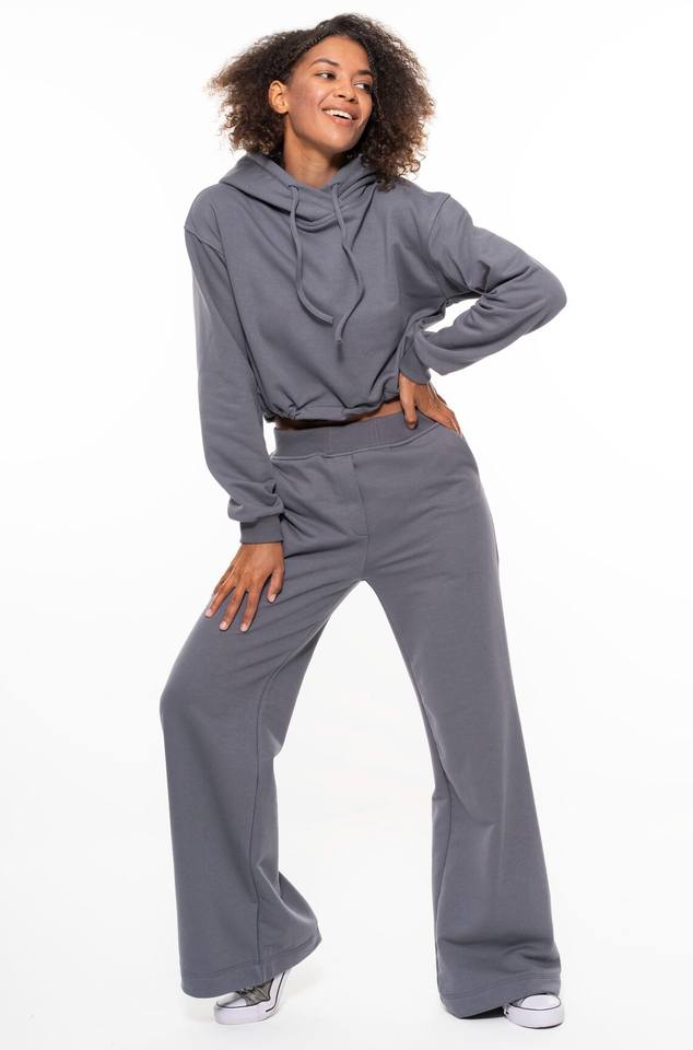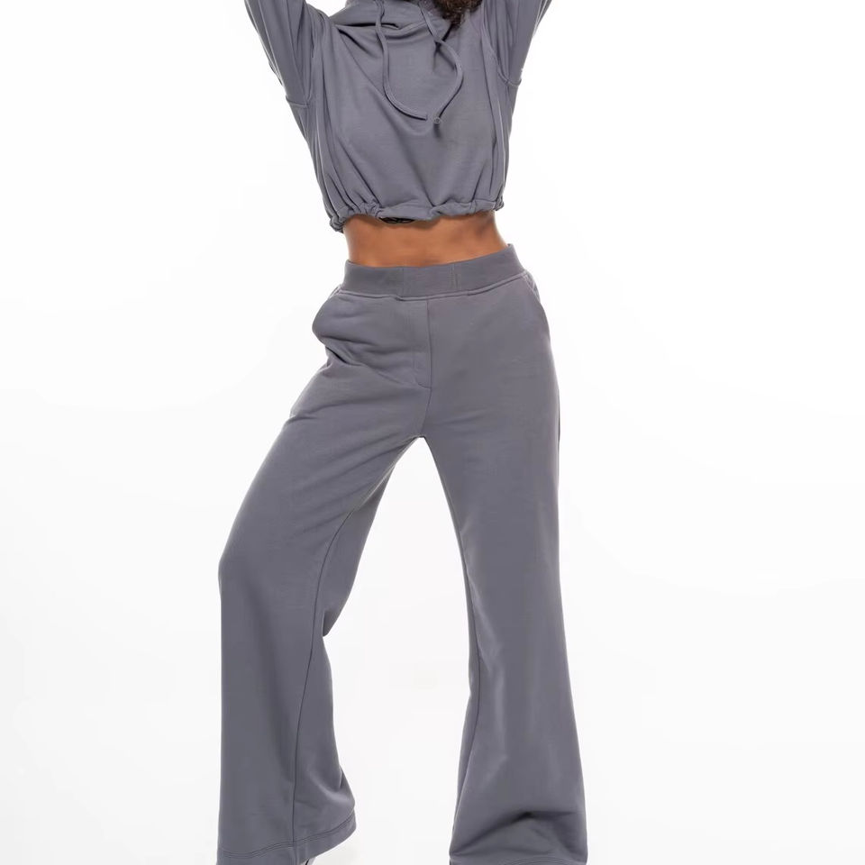 Smoke Grey Fit Flare Women's Jogging Set Hip Hop Custom Wide Leg French Terry Loose Casual 2 Piece Crop Hoodies and Pants Set
