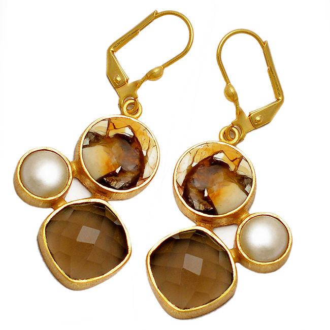 Pierre principale:Quartz fumé Perle Mookaïte brecciée