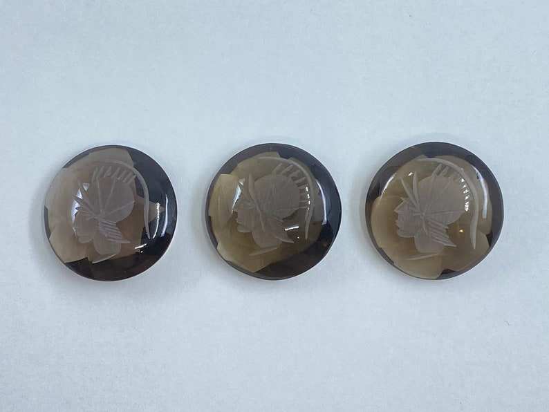 Quartz fumé, intaglio tête de romain, cabochon rond, pierres précieuses, tailles assorties de 12 mm à 30 mm, calibrées, lot pour la fabrication de bijoux
