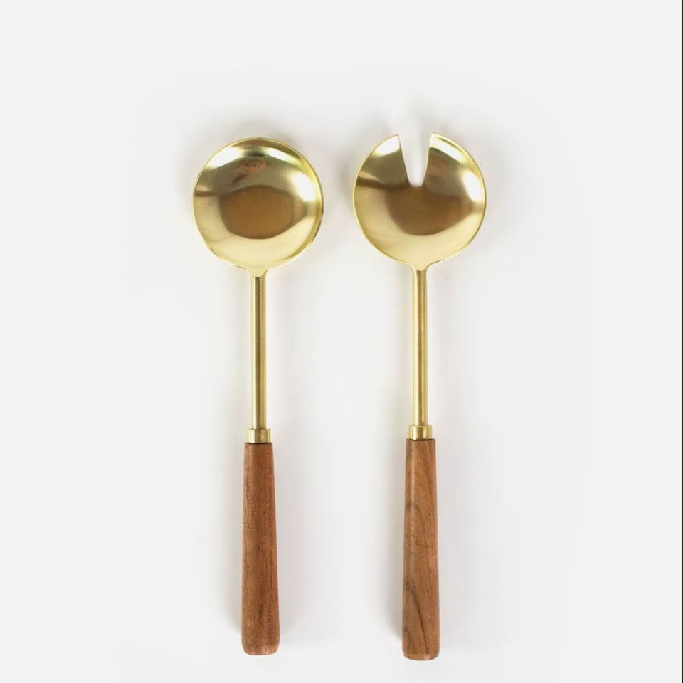 Ensemble de serveurs à salade en métal lisse et équilibré offrant une expérience culinaire raffinée avec une construction facile à manipuler