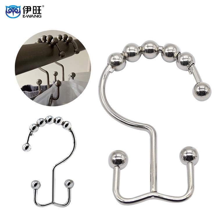 Crochets de rideau de douche en acier inoxydable à glissement fluide, anneaux de rideau de salle de bain double face antirouille pour hôtel