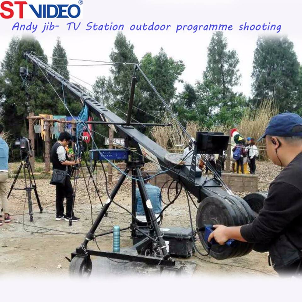 Tirs lisses 39 pieds Pan and Tilt Remote Head Camera Broadcast Shooting Jib avec 3 roues Dolly