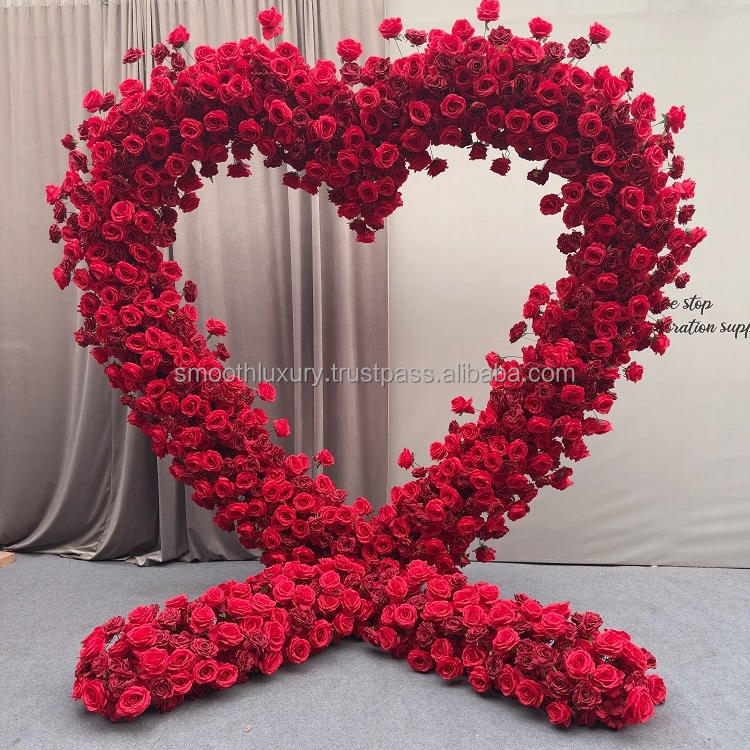 Smooth Wedding Proposal Decorations Artificial White Red Rose Heart Shaped Flower Arch Backdrop Wedding Floral Arch