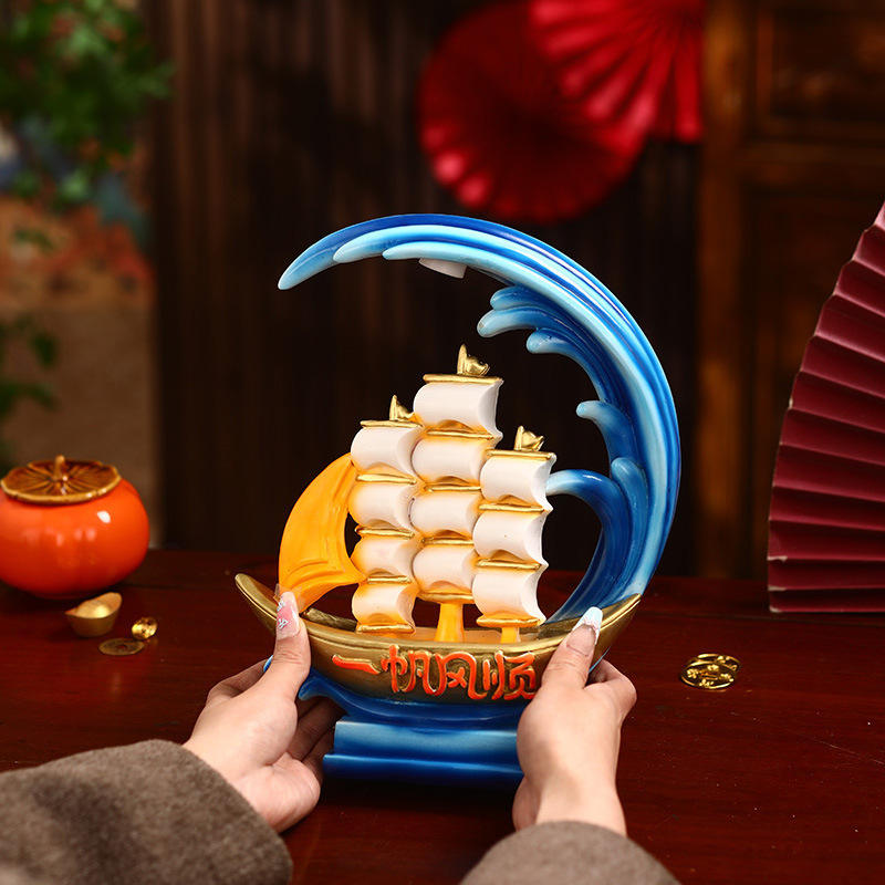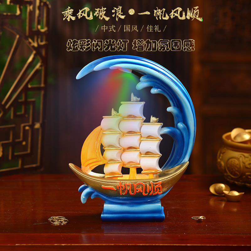 Smooth Sailing Epoxy Resin Sculpted Ornaments Handicrafts Lights High-End Office Decor Housewarming Gifts
