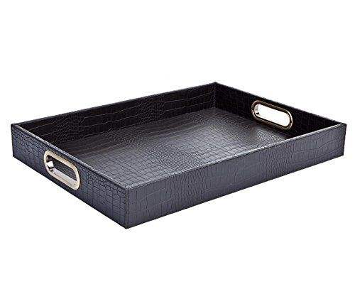 Plateau de service en cuir texturé lisse avec bords surélevés, décoratif, qualité commerciale, pour une présentation sécurisée des aliments et des boissons sur les tables et comptoirs