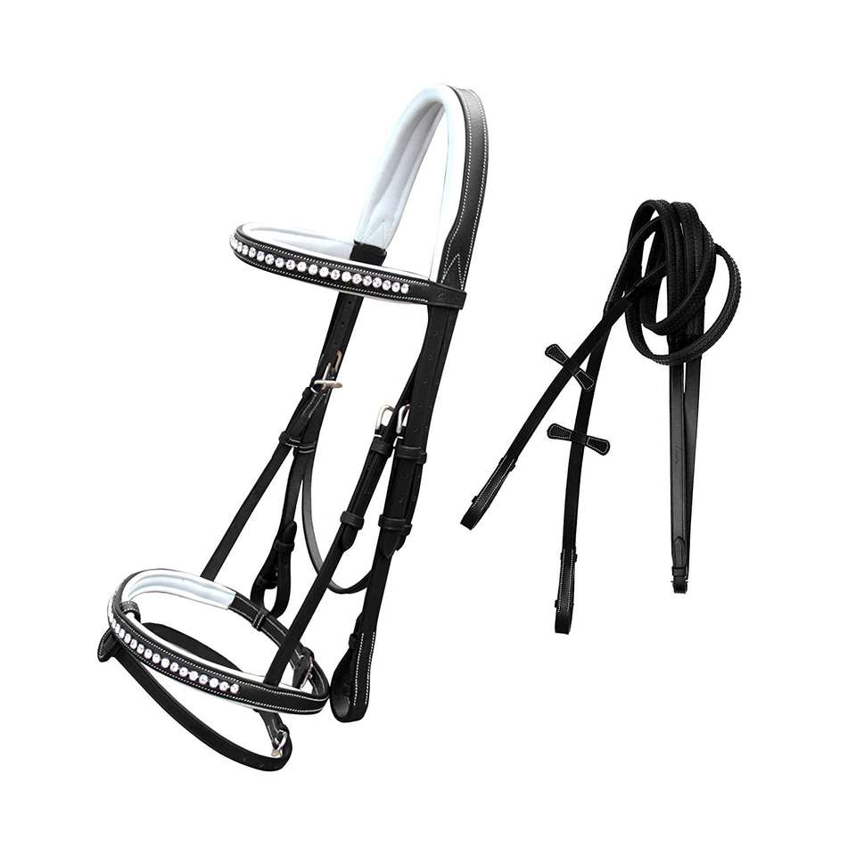Bride d'ébarbage avec bride de rembourrage rembourrée en noir et blanc Tuyauterie essence Obstacles équins de haute qualité Produit pour chevaux