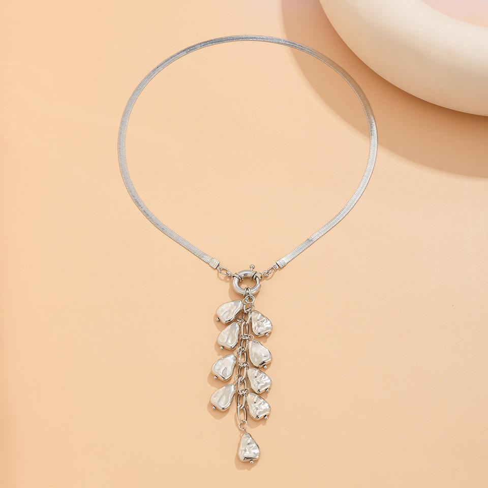 Collier chaîne serpent perle baroque gland et lame de cuivre tour de cou style palais vintage bijoux pour femmes