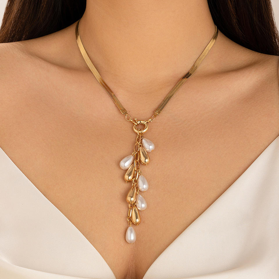 Collier chaîne serpent perle baroque gland et lame de cuivre tour de cou style palais vintage bijoux pour femmes