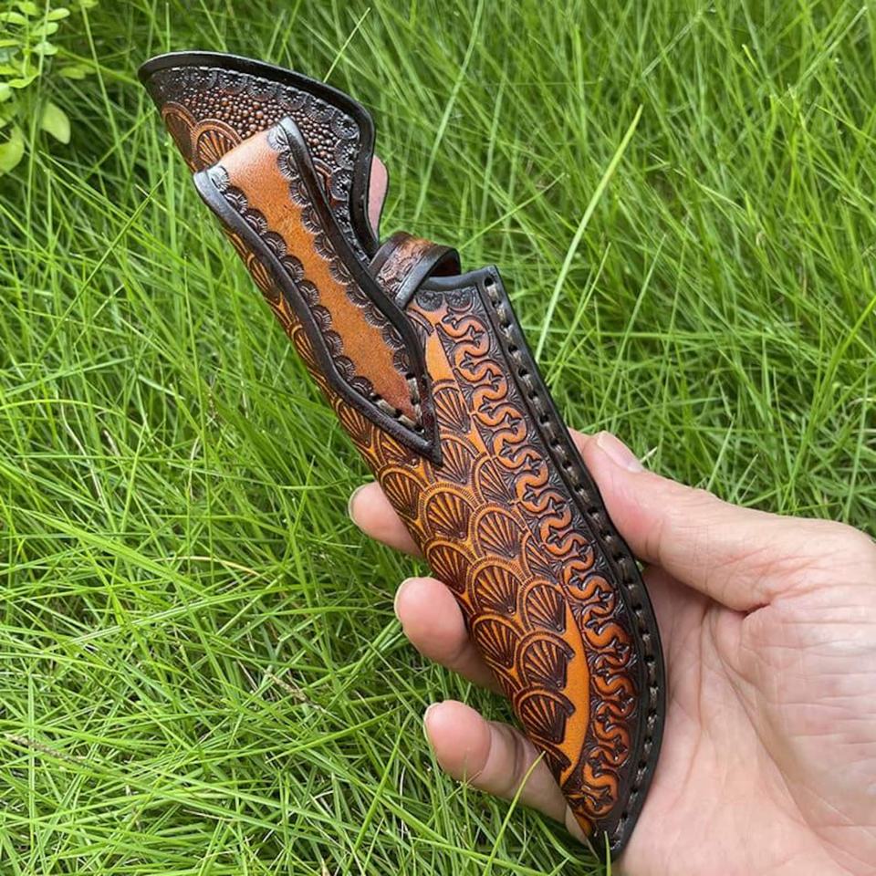 Motif de peau de serpent en cuir véritable tanné végétal petit couteau droit gaine fourreau couteau d'extérieur, couteaux de survie