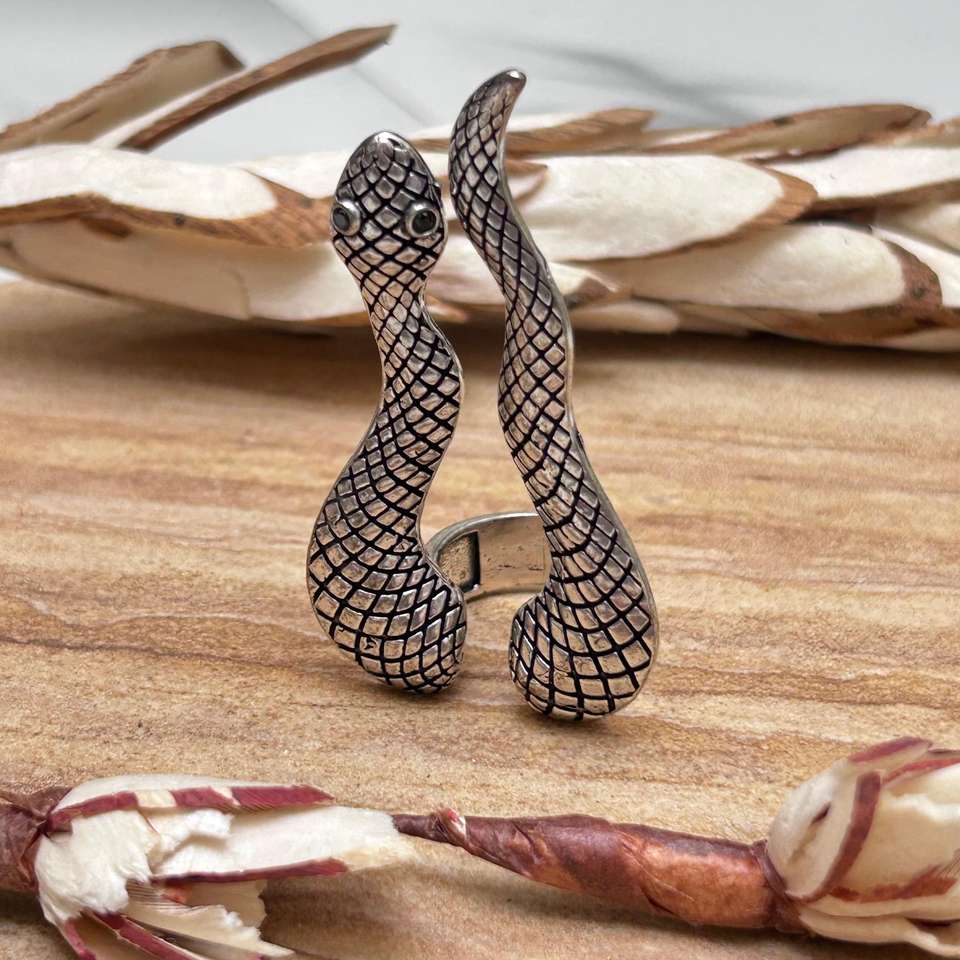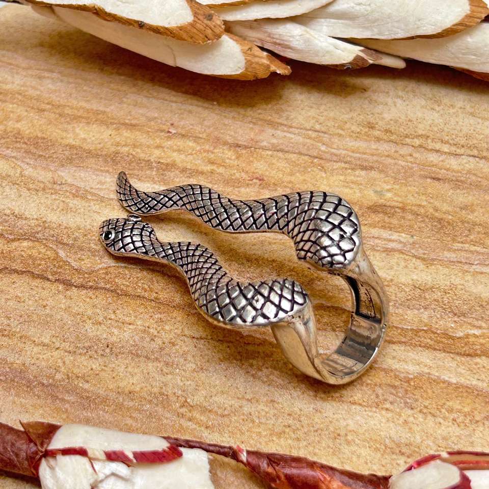 Bague Serpent Statement Neo-Gothique Animal Femme Plaqué Or 18K Argenté Bijoux Finition Argent Oxydé Reptile Anniversaire