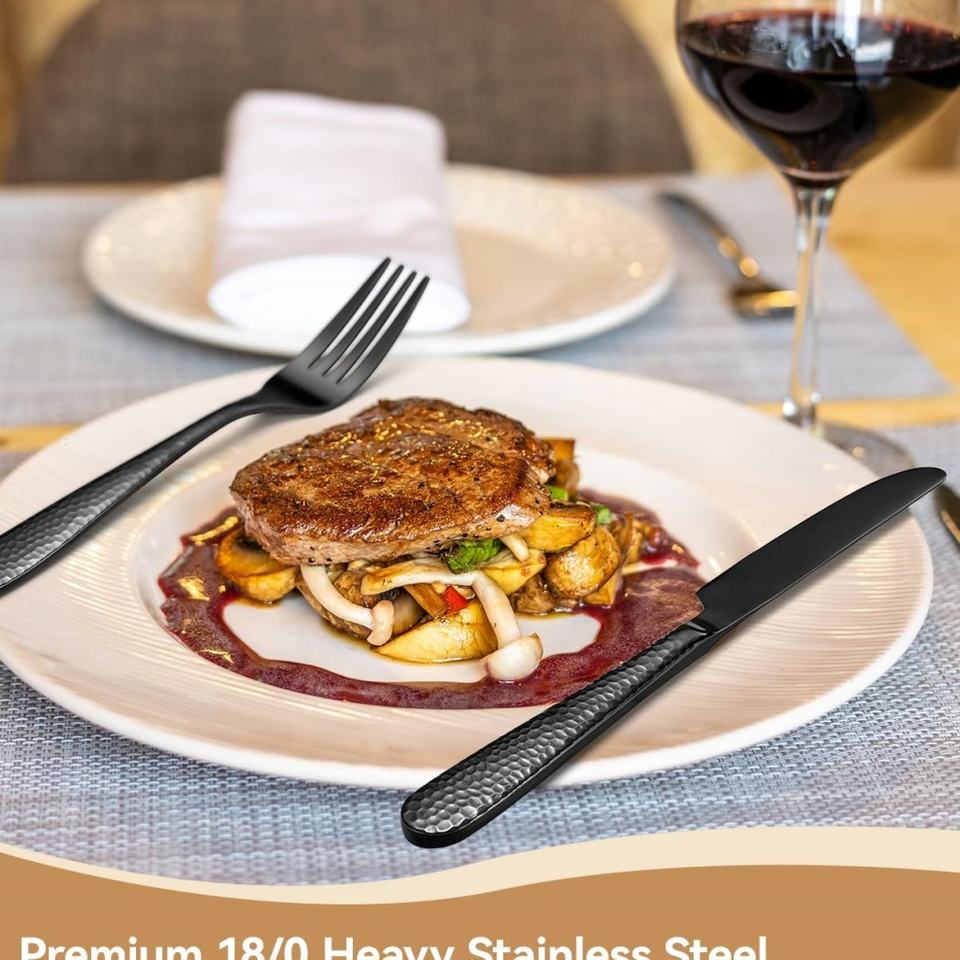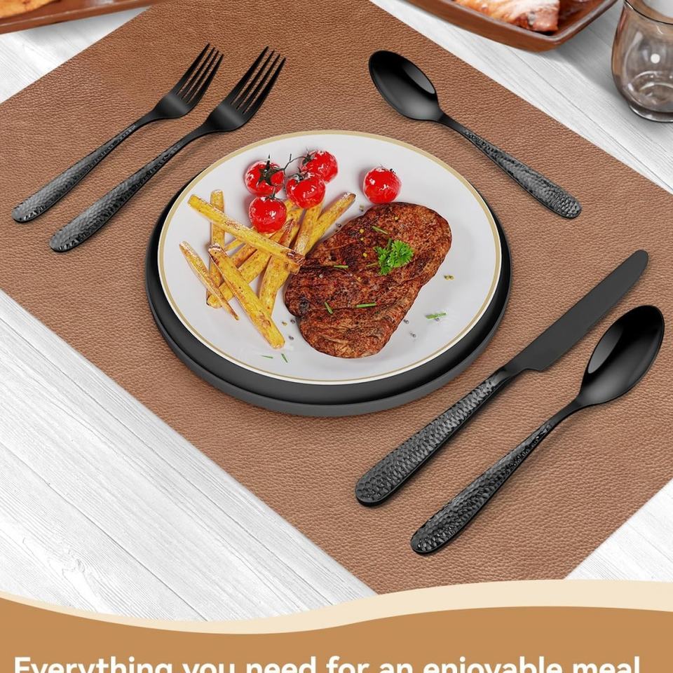 Ensemble de couverts en acier inoxydable 430 avec manche carré effet peau de serpent, poli miroir, pour hôtels, steak, dessert, cuillère