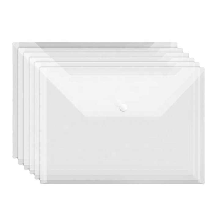 Pochette à Bouton-Pression Transparente en Plastique pour Documents Format A4 Horizontal – Vente en Gros