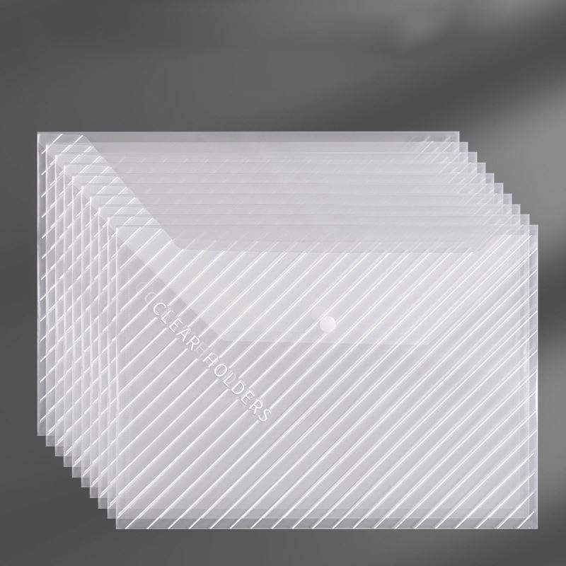 Pochette à Bouton-Pression Transparente en Plastique pour Documents Format A4 Horizontal – Vente en Gros