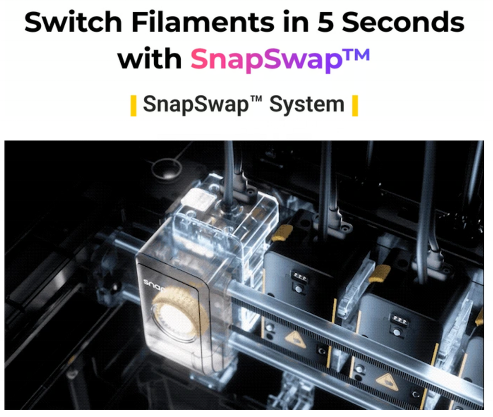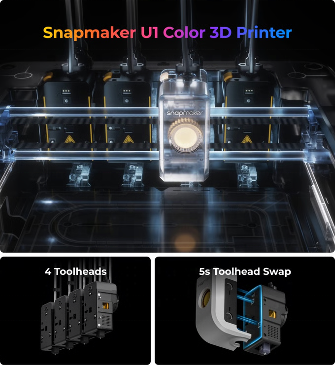 Imprimante 3D FDM multicolore automatique à quatre extrudeurs Snapmaker U1 à grande vitesse 500 mm/s, grande taille d'impression 270 mm * 270 mm * 270 mm
