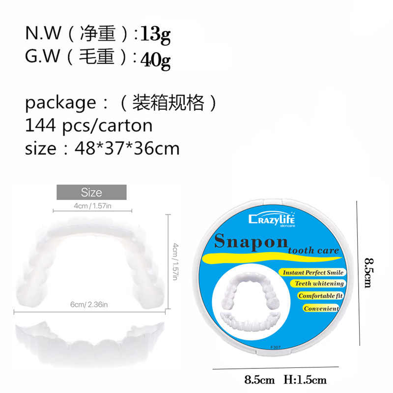 Appareils dentaires de simulation Snapon, couvre-dents Snapon, facettes dentaires supérieures et inférieures, blanchiment des dents parfait, remplacement