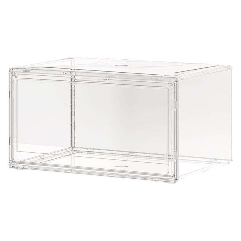 Boîte à chaussures empilable et pliable pour baskets, convient à la taille 14 US, acrylique transparent, simplicité moderne, blanc transparent, présentoir à chaussures à ouverture latérale