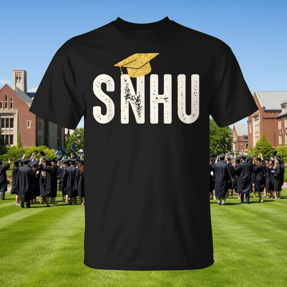 T-shirt de remise de diplôme du collège Snhu avec chapeau – Produit promotionnel