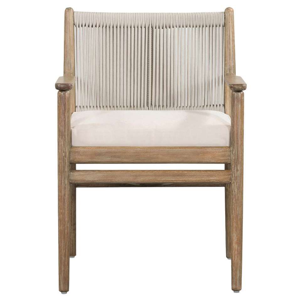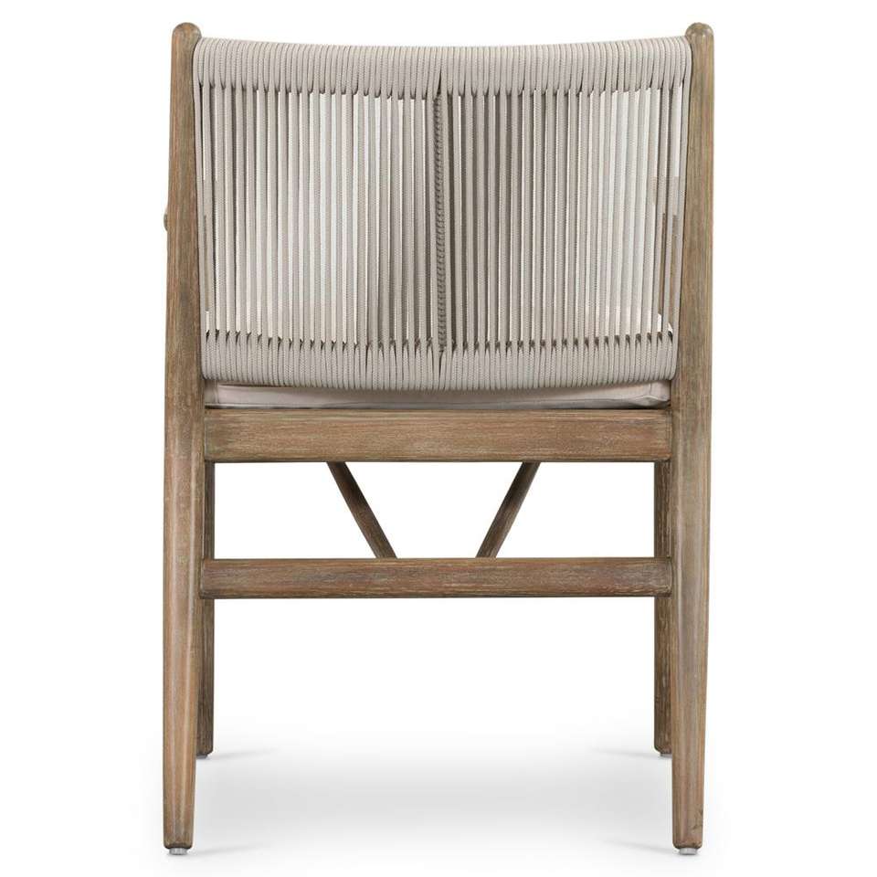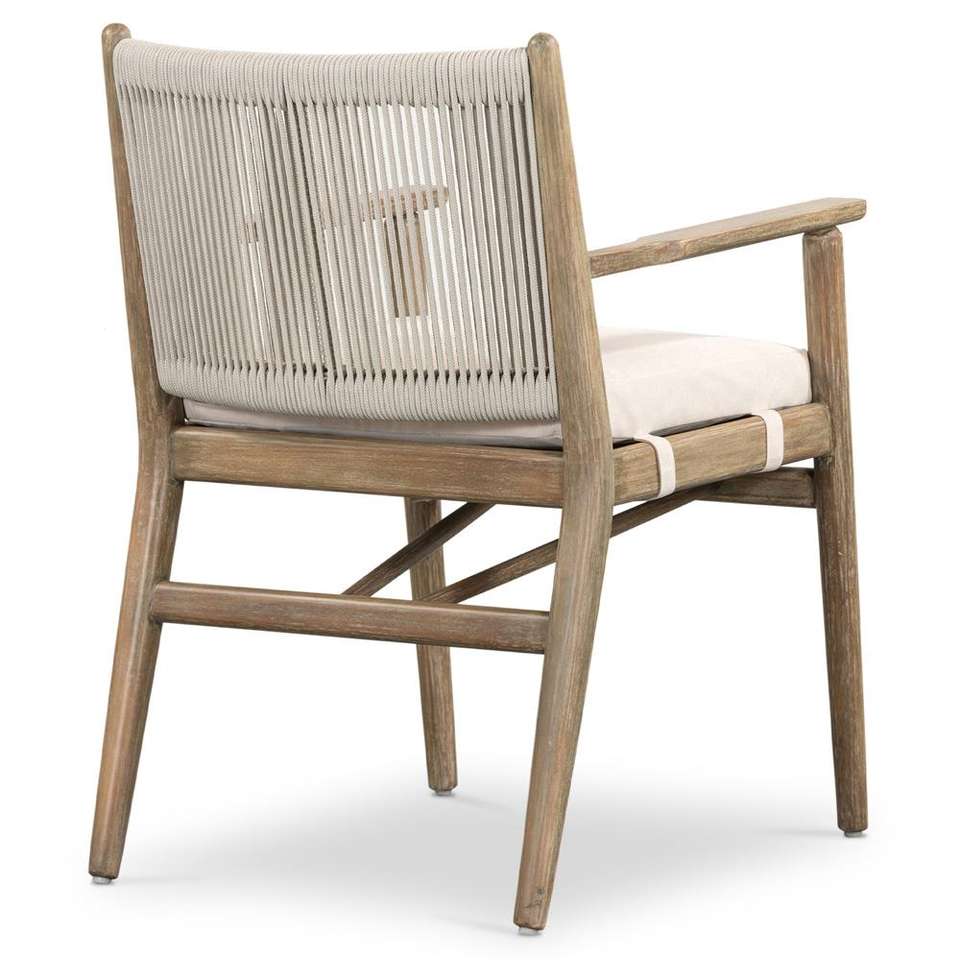 Chaise de salle à manger Snow Arm en corde tressée, bois de teck et coussin de siège pour une utilisation intérieure et extérieure.