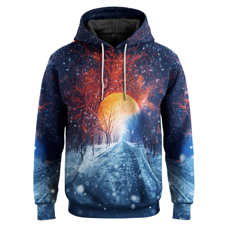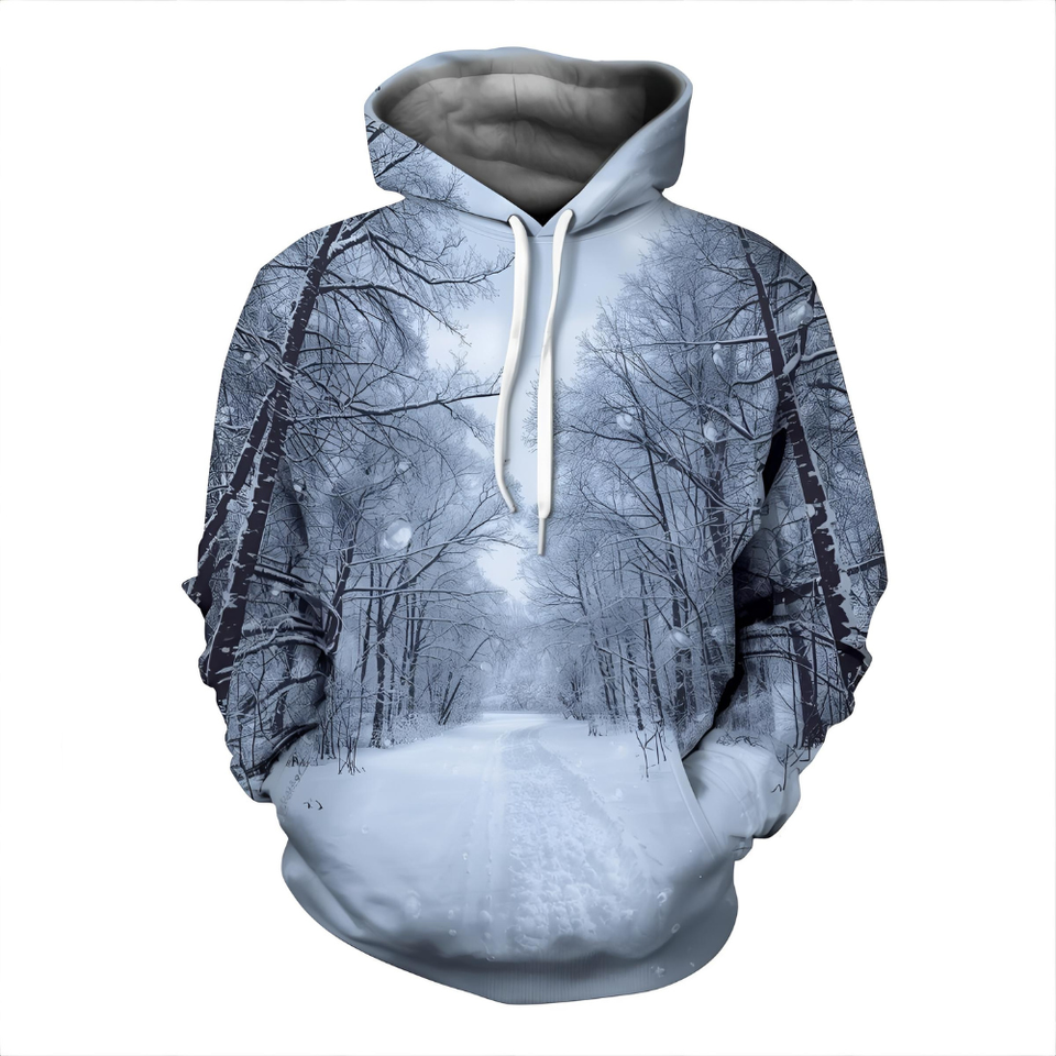 Sweat à capuche imprimé sur le thème de la chute de neige Sweat-shirt en molleton de coton avec design graphique d'hiver et options OEM/ODM