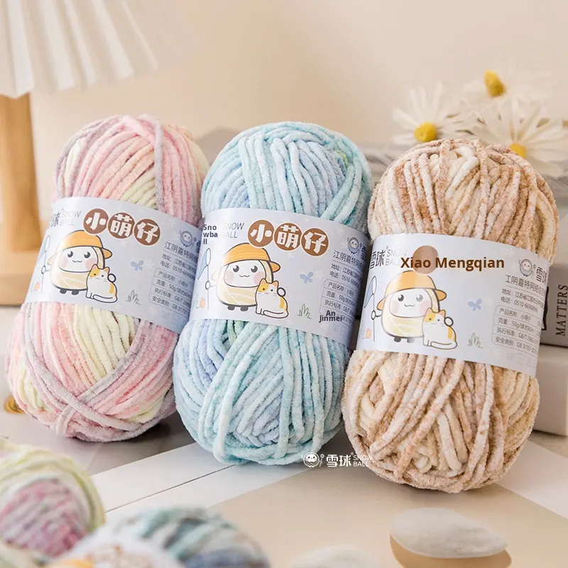 Fil chenille épais coloré et mignon, fait main, pour tricot DIY, idéal pour couvertures de poupées et écharpes pour bébés