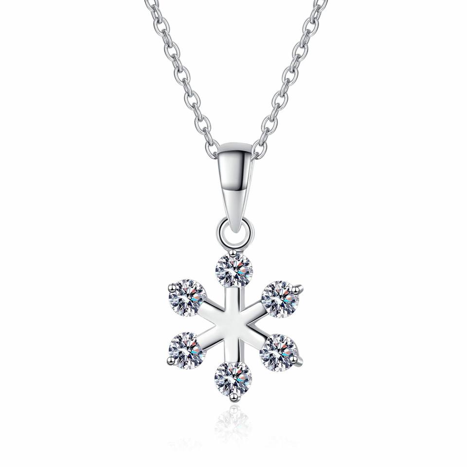 Design flocon de neige avec minuscule collier pendentif en moissanite étincelante en argent sterling 925