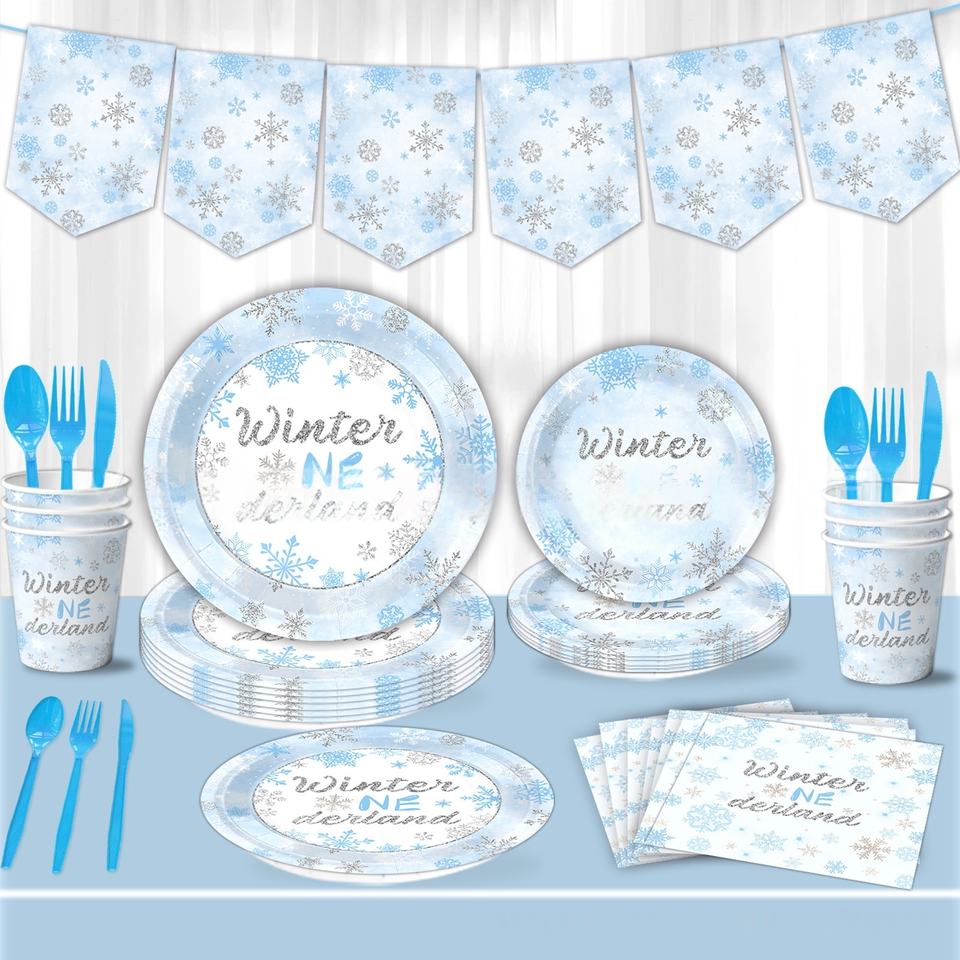 Vaisselle et décorations de fête à thème de flocon de neige Assiettes en papier du monde de la neige Accessoires de tasses pour le divertissement de fête