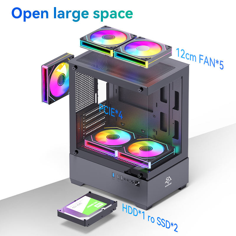 Boîtier d'ordinateur MicroATX Snowman en acier avec fenêtre latérale, espace généreux pour composants haut de gamme