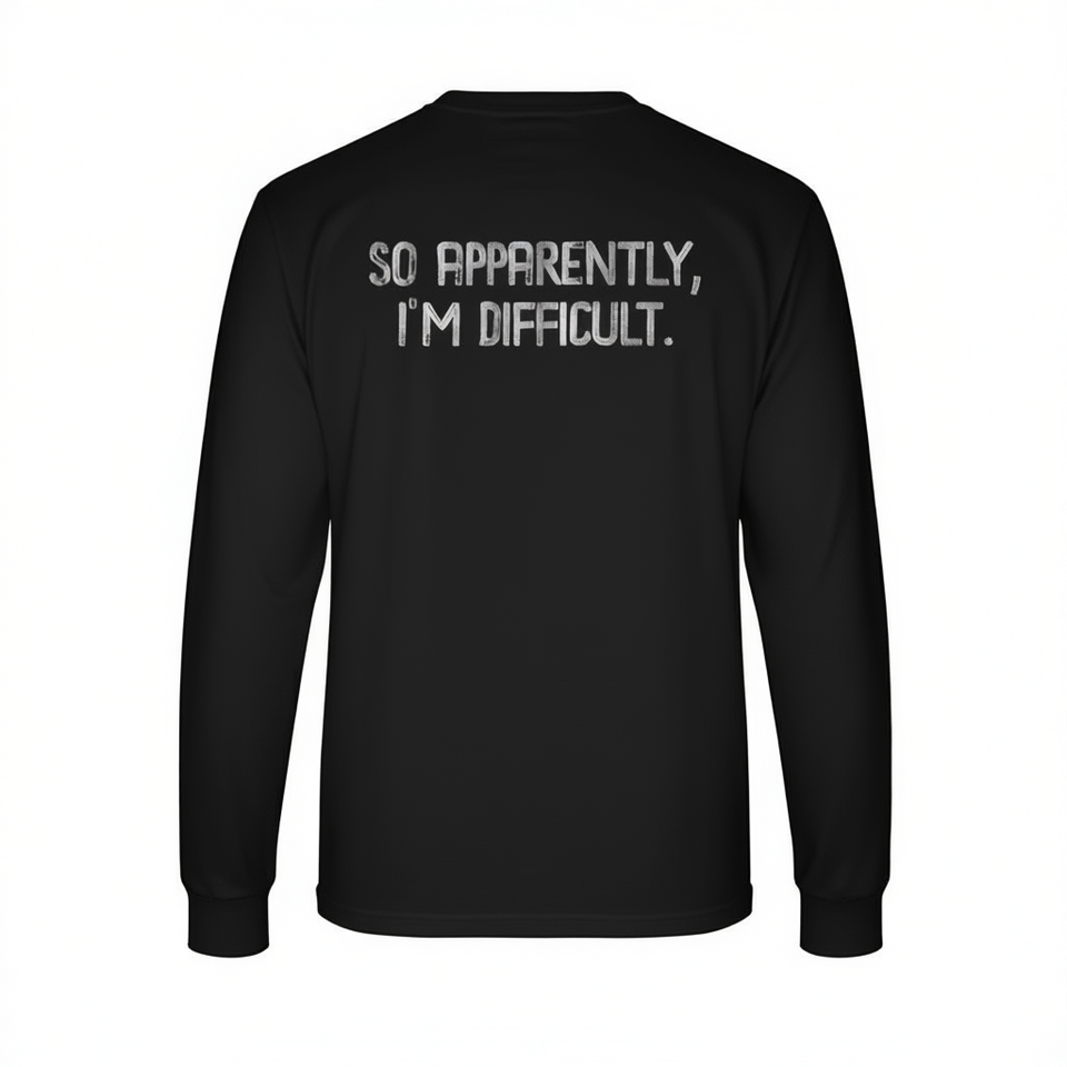 T-shirt à manches longues unisexe pour adulte en coton à col rond avec impression sérigraphiée « So Apparently I'M Difficult » pour activités promotionnelles