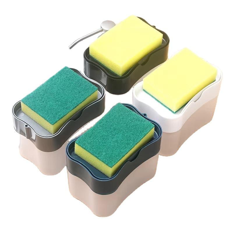 Distributeur de savon, pompe à savon, porte-éponge, nouveau distributeur de savon liquide manuel 2 en 1, porte-éponge, distributeur de savon pour la cuisine