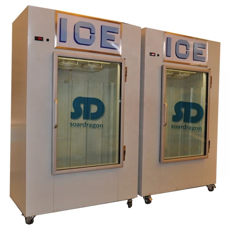 Soarddragon Cold Wall Bagged Ice Storage Bin Merchandiser Static Air Mechanical Solid Door Cube Ice Display Congélateur Utilisation en intérieur