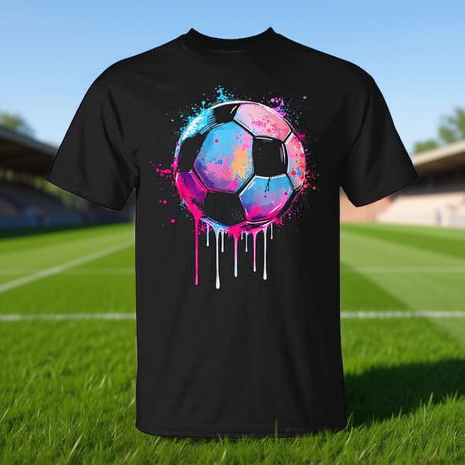 T-shirt Soccer Drip Design pour garçons et filles, vêtements de sport colorés