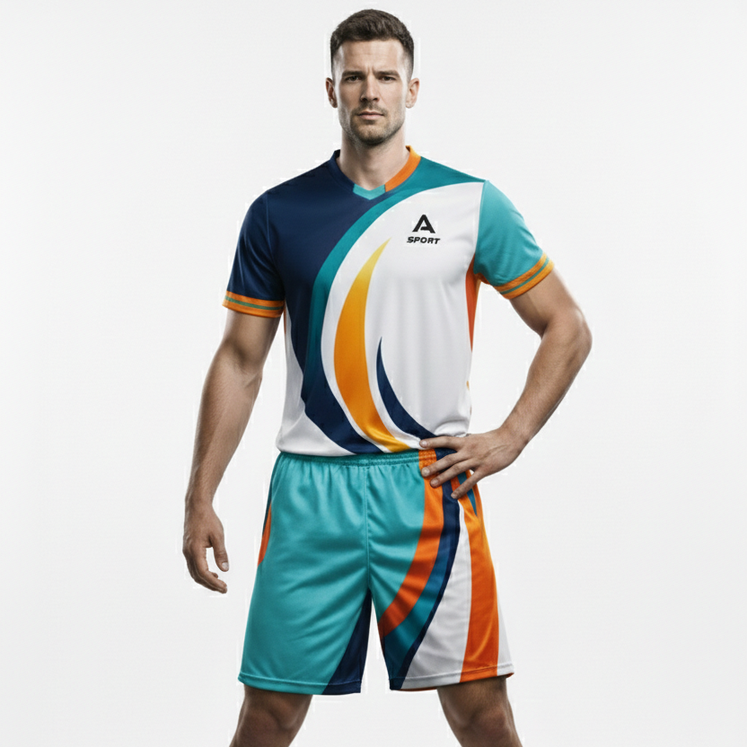 Ensemble d'uniformes de football à design évasé, imprimé par sublimation, respirant, séchage rapide, nom d'équipe personnalisé, services OEM, prix de vente direct usine