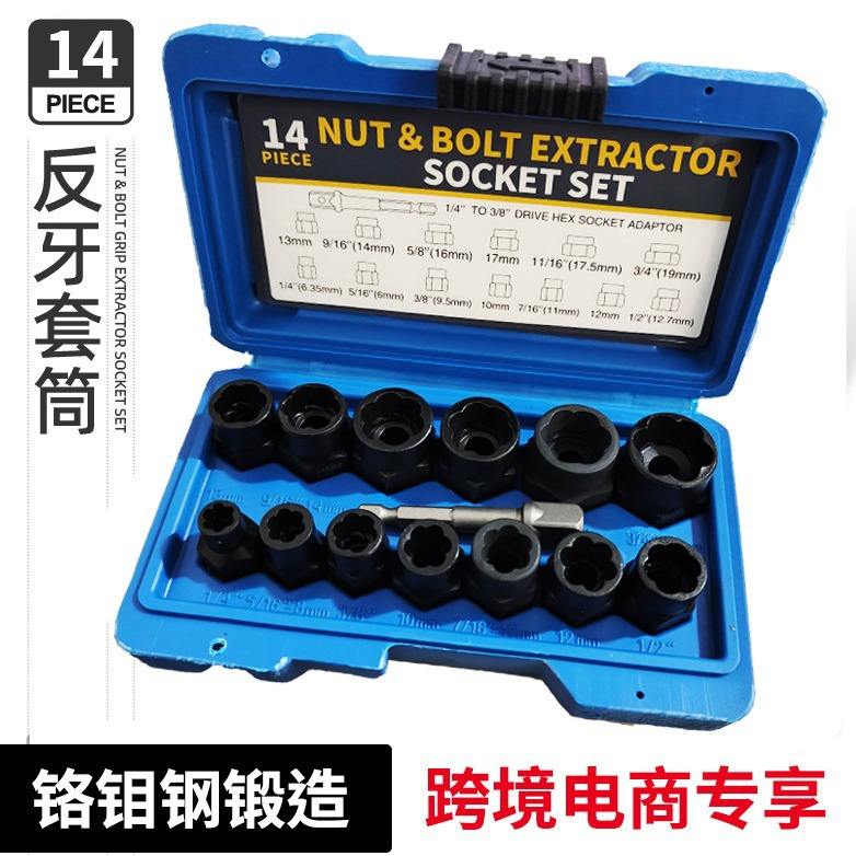 Jeu d'extracteurs de douilles, 14 pièces, entraînement de 1/4 à 3/8 pouces, pour l'élimination des boulons et vis endommagés, en acier au chrome-molybdène