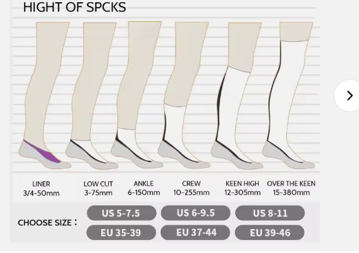 Chaussettes Crew, Chaussettes à la cheville, Chaussettes de genou, Chaussettes de tube, Chaussettes de compression, Chaussettes respirantes, Chaussettes sans couture, Chaussettes de sportType de chaussette