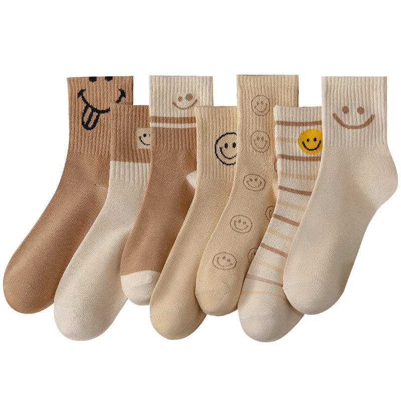 Socks High Quality Wholesale Ins Style Versatile Cute Cartoon Sports Socks High Quality Casual Cute Smiley Face Mid-Tube Socks